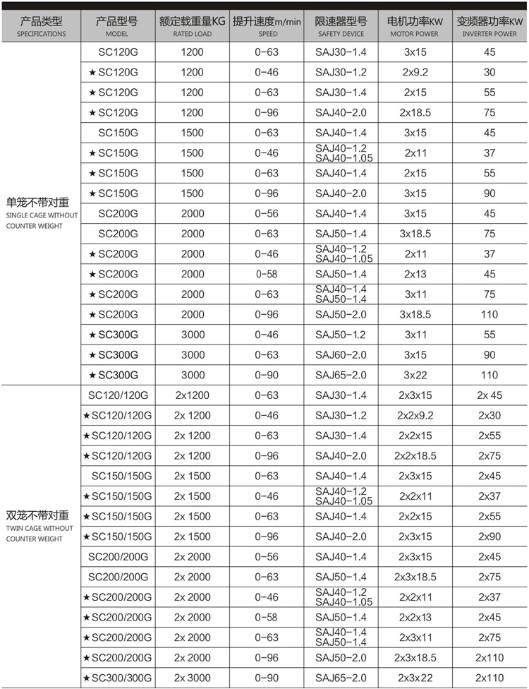 額定速度:0-46、0-56、0-58、0-63、0-96米/分鐘
